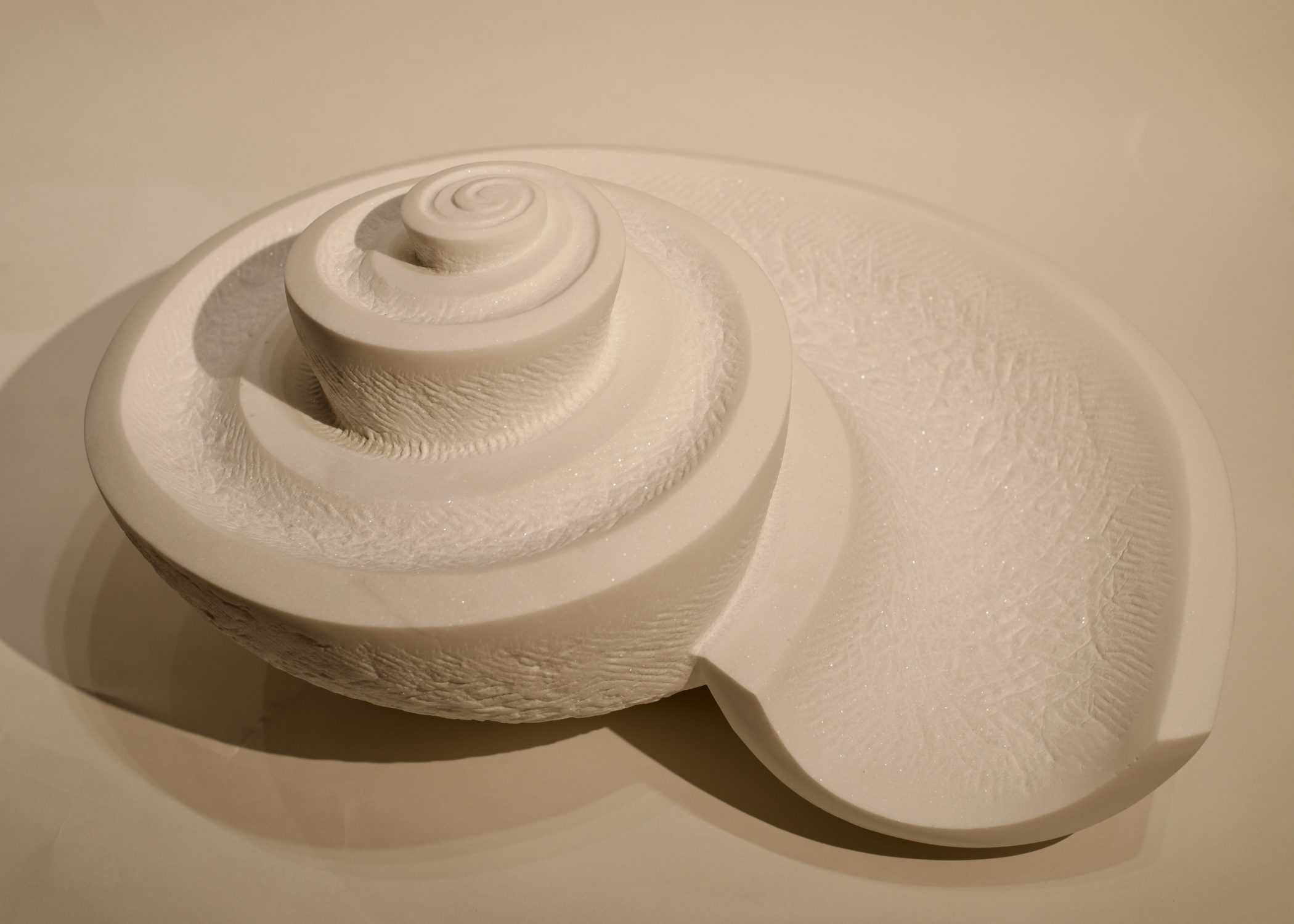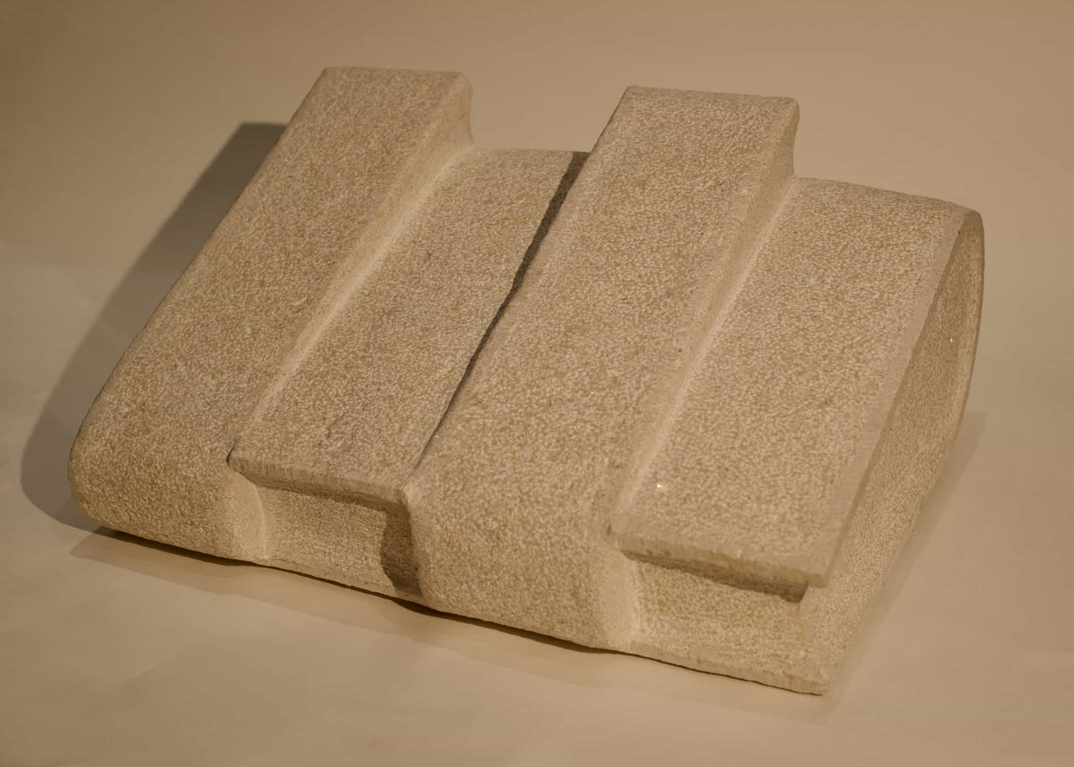 In der Gestalt einer Möbiusschleife werden die Kanneluren zu den Seiten eines endlosen Bandes. Mal konvex, mal konkav ausgeformt, versetzen sie den Granit in Bewegung und lassen ihn zugleich geschlossen und unendlich erscheinen. Das massive Material wird so zu einem Objekt, das Leichtigkeit und organische Lebendigkeit ausstrahlt – eine geniale Verbindung von Tradition und Innovation.